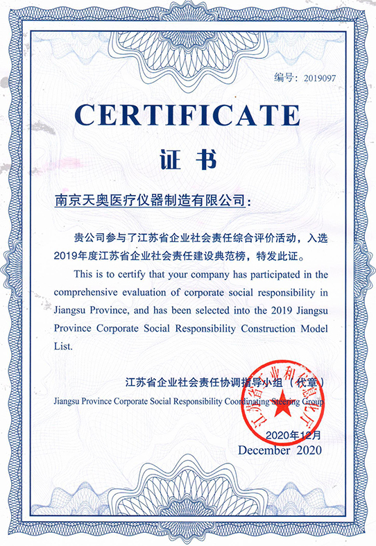 在2020年武汉新冠疫情期间,天奥紧急加班生产,为武汉火神山、雷神山医院累计交付了3491件医用护理及星空(中国)设备,为战胜疫情贡献了天奥力量。3月底天奥名列省级新冠肺炎疫情重点保障企业名单,同时获得了2020年度南京市新冠肺炎疫情防控专利实施计划项目补助。